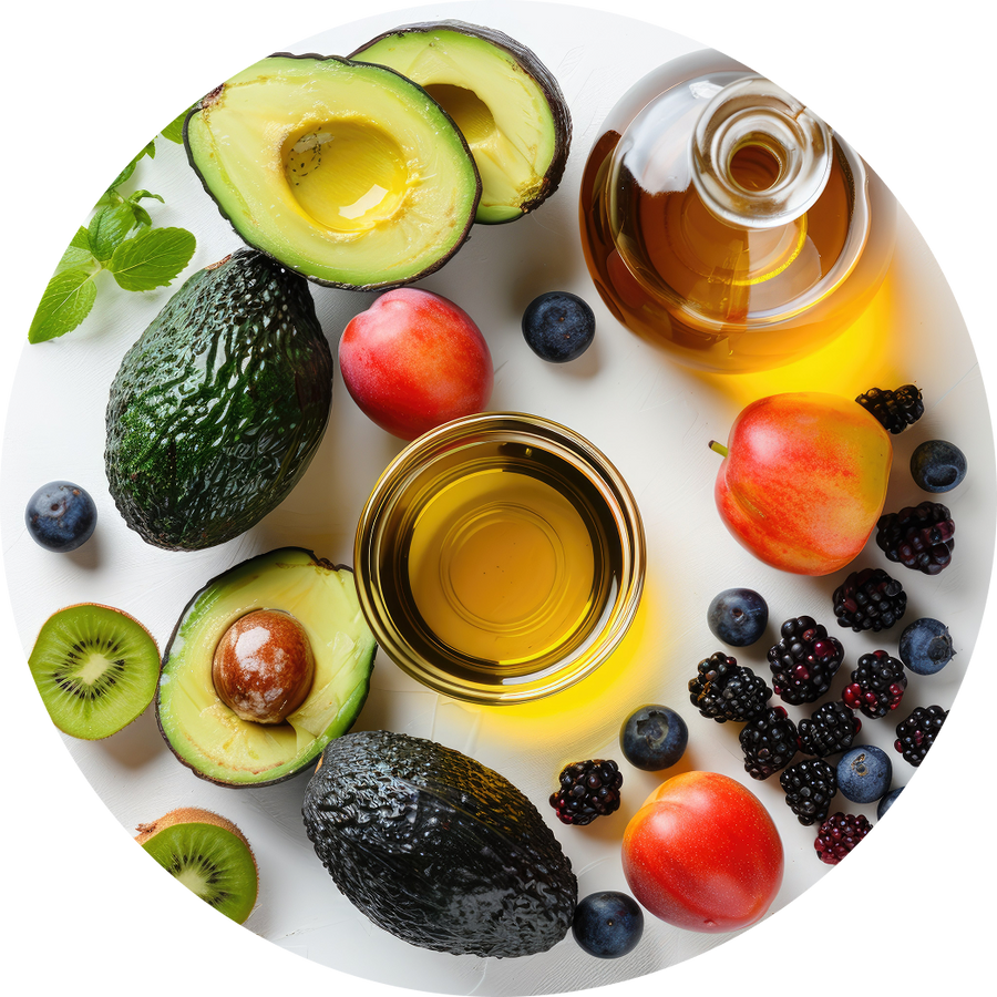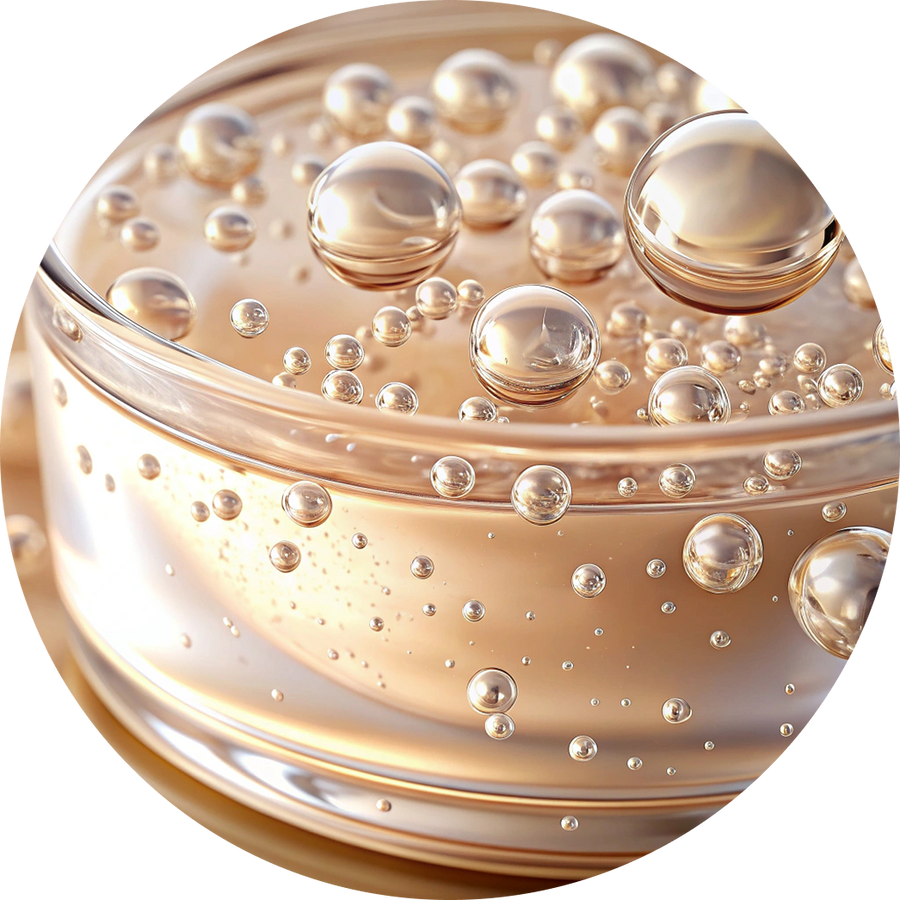 A powerful lipid antioxidant that shields skin from UV and environmental damage. It moisturizes, soothes, and enhances skin repair while amplifying the penetration of active ingredients. Together with Vitamin C, it forms a dual shield against oxidative aging.